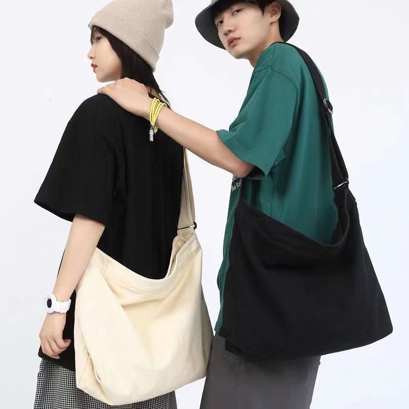 大きくて使い勝手が良い帆布製で丈夫なキャンバスショルダーバッグ。