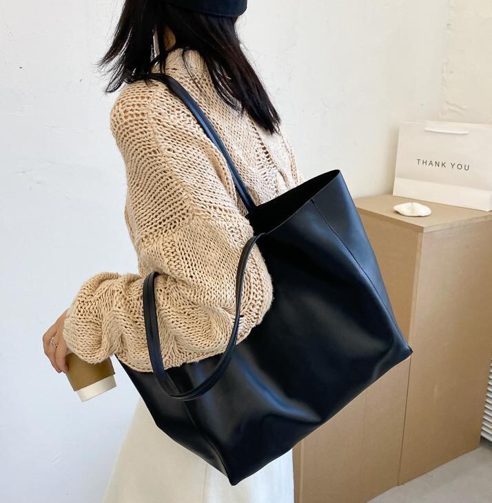 新品 トートバッグ レディース メンズ おしゃれ シンプル 無地 黒 レザー 大容量 定番 カジュアル ビジネス