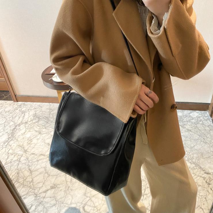 ショルダーバッグ レディース メッセンジャーバッグ シンプル レザー 無地 カジュアル おしゃれ 鞄 大容量 黒 斜め掛け 定番