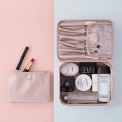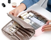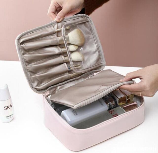 化粧水や香水などのボトル系も収納可能で旅行などにはぴったりな化粧かばんです。
