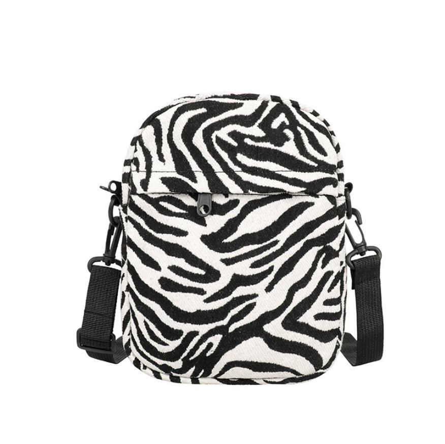 ショルダーバッグ サコッシュ 斜め掛け ゼブラ柄 白 スクエア シンプル ポーチ 大容量 カジュアル ポケット 収納 おでかけ