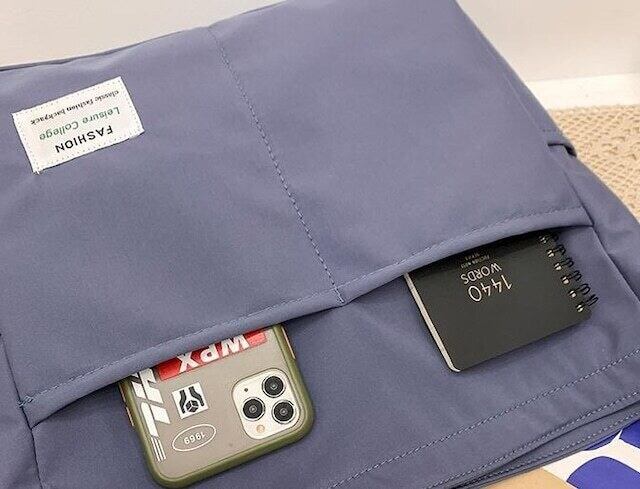 内ポケットにはファスナーポケットがあり、仕分け収納がしやすく、パス や スマホ などすぐ取り出したいものもOK!開閉口もファスナー仕様!