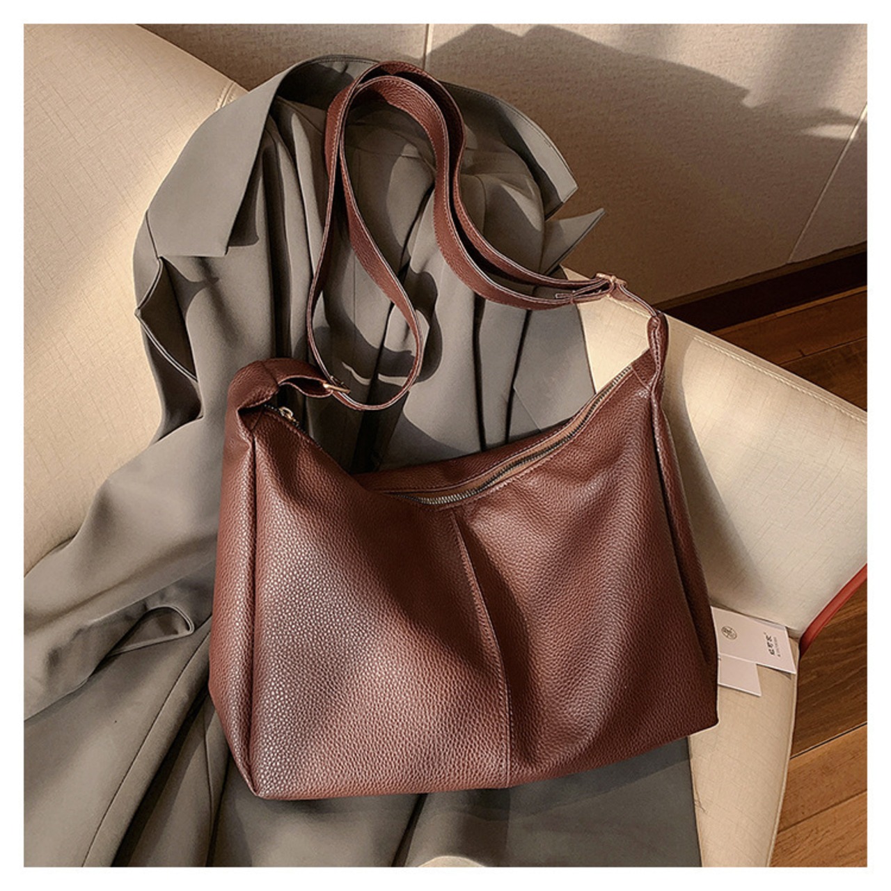 ショルダーバッグ 斜めがけ レディース 大容量 黒茶 ダークブラウン レザー シンプル おしゃれ マザーズバッグ 調節可能