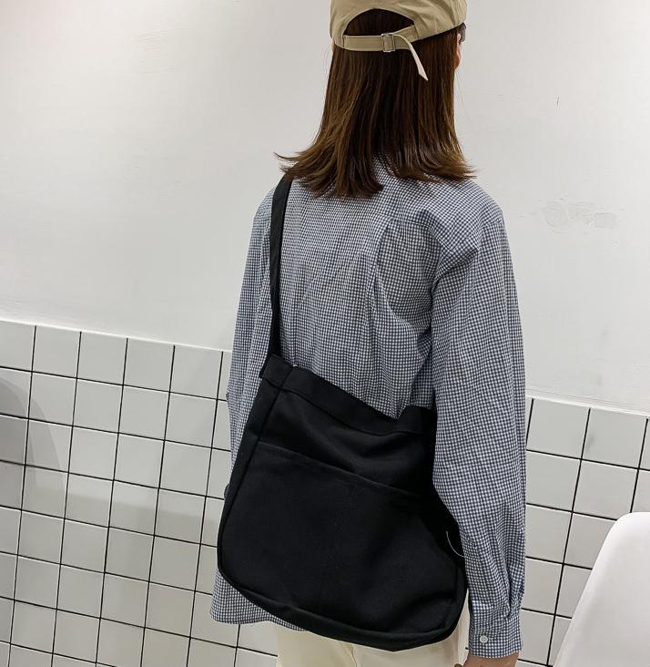 ☆シンプル で ポケットが多い 軽量 斜めがけ キャンバス ショルダーバッグです。